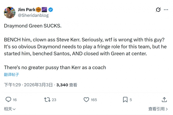 勇士球迷狂喷追梦+科尔: