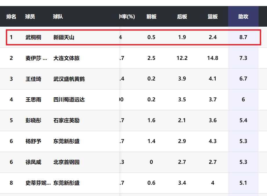 在本赛季WCBA联赛助攻榜(包含外援)上,31岁的武桐桐以场均8.7次助攻高居第一。此外,武桐桐场均得到17.5分,位居本赛季本土球员得分榜第一。经历了两次膝盖手术的武桐桐终于穿越了黑暗时光,恢复了巅峰状态。这样的武桐桐是目前中国女篮非常需要的得分手和进攻组织者。